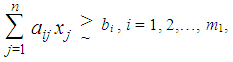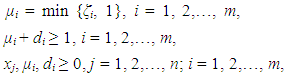where xj, j = 1, 2,..., n, are non-negative decision variables, bi, i = 1, 2,..., m, are the required aspiration levels, while aij represents the coefficient of the jth decision variable in the ith fuzzy goal constraint. The symbols