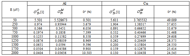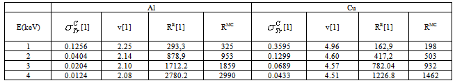 where E0 and S(E) are the primary energy and the stopping power of primary particle respectively. The integration was performed, generally, from the primary energy E0 to the cutoff energy instead of 0 eV.Indeed, we note that in our work[19] we have calculated the range using CSDA for Al. So, Table (6) represents their range (RR), the range by using the same code (RMC), the range using CSDA (RCSDA) and the deviation between them. We note that Rouabah et al[1] have taken 20 eV as a cutoff energy however the RCSDA calculated by[19] has been done for the cutoff energy equal to 100 eV. Consequently, when we added the range between 20 eV to 100 eV the deviation becomes greater (reaches ≈13 % for E=2keV). Therefore, on the basis of Jablonski et al notification, while the deviation is more than 10% (particularly for E>1 keV) then the results of[1] are incorrect. Consequently, all their results concerning the mean number of wide angle collisions and the backscattering coefficients are incorrect. We note that this error has been repeated by Rouabah et al in their work[6]. By consequence, both their works[1, 6] must be reviewed.Important remarks:■ We are recognized that the notification “to say that the algorithm range is true it must be no deviations between the ranges obtained analytically and that obtained by using CSDA in Monte Carlo scheme otherwise the used Monte Carlo code is wrong (except a statistical fluctuation, due to the use of the Monte Carlo simulation)” was the notice of the reviewer chosen by the Journal Nucl. Instrum. Methods Phys. Res. B to review the paper[19]. We think that this notification is the key to confirm the validity of the Monte Carlo Algorithm range.■ In the case of the Monte Carlo method the statistical fluctuation error is calculated as