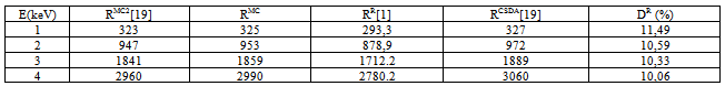 , Rouabah et al[1] used MC simulation to calculate the range and for this raison, they think that they have carried out a combination between MC simulation and Vicanek and Urbassek formula. We think that the word “combination” is not appropriate because, we think that to do a combination between MC and the analytic model; the authors of“[1]” should be used the same elastic and inelastic models (i.e. the same input data). To show that the authors of[1] have not carried out a normalized combination, we have presented in Table (4)