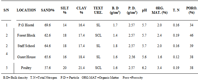 Table 3. Physical Properties of the soils of the locations  |