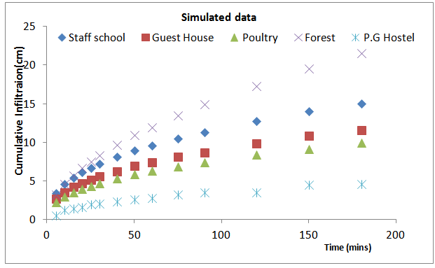 | Figure 3. SImulated and field Infiltration curves for the soil of Guest House block |