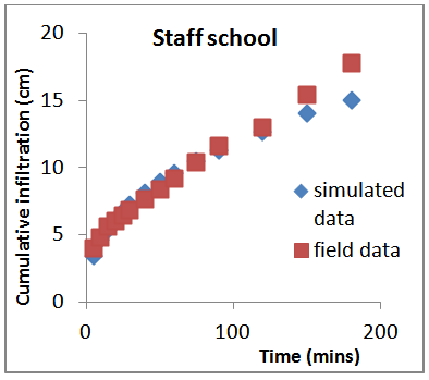 | Figure 4. SImulated and field Infiltration curves for the soil of staff school block |