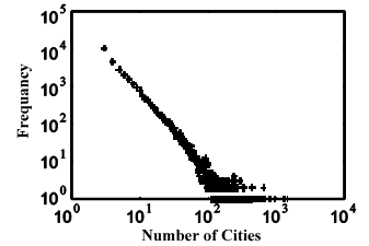 The learning data for machine learning can be generated with the optimal tours of which the instances had been solved completely such as the EUC_2D TSPLIB instances. Accordingly, the optimal classifications can be regarded as the benchmark instances of the SHPPs. In Figure 9, we show that how many instances we can generate as the SHPP benchmarks with the TSPLIB instances. The x-axis indicates the number of cities as SHPP instances in log scale, and the y-axis indicates the frequency of the SHPP problems in log scale. There are many instances of the SHPPs enough to study the classifier on our framework. | Figure 9. The distribution of the number which the TSPLIB instances can generate the SHPP instances |