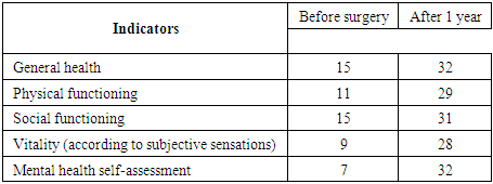 The choice of tactics of management, volume and access of surgical treatment of patients with female genital prolapse, as well as an objective assessment of the effectiveness of its results and postoperative rehabilitation was carried out based on anamnesis data, clinical, laboratory, ultrasound and complex urodynamic methods of research. Regardless of volume and access, in the operation aimed at the elimination of prolapse of the genital organs, including those complicated by urinary incontinence, as the main or one of the components included the correction of the incompetence of the muscles of the pelvic floor with the obligatory narrowing of the genital gap.In the main group, 32 patients underwent surgical correction, with a new modification. After a transvaginal hysterectomy, the vaginal stump to the abdominal cavity is left open by suturing the pelvic peritoneum together with the ligament stumps to the proximal wall of the vagina with “x” shaped vinyl sutures, without periodization, which ensures reliable hemostasis and adequate drainage of the small pelvis, which guarantees the prevention of postoperative stump and infiltrate, inflammation of the pelvic peritoneum and improves the conditions for tissue repair and scar formation, as well as the recurrence of prolapse of the walls of the vagina. In this case, enterocele does not develop. Next, we perform colpoperineolevathoroplasty according to the technique. At the control examination after 12 months, the height and depth of the vagina, the condition of the scars, the tone of the vaginal muscles, urinary function, and the condition of the cervix were assessed.For a comparative assessment of the long-term results of surgical treatment of OVPO in patients of the main group, urination control was performed, the volume of the cervical stump was determined, the total length of the vagina, genital fissure, and height of the vagina were measured.According to the examination after 12 months, there was normal architectonics of the perineum and vagina, the stump of the cervix, which looked healthy in all patients.This behavior of the woman was also explained by the fear of "disrupting the effect of surgical treatment." There were significantly fewer negative emotions during intimacy. Women noted an increase in the frequency of experienced orgasms, arousal by a sexual partner, and sexual desire. All these changes led to an increase in satisfaction with sexual life, which indicates a positive impact on the quality of life.Indicators of women with genital prolapse in the main group after surgery with a new modification.