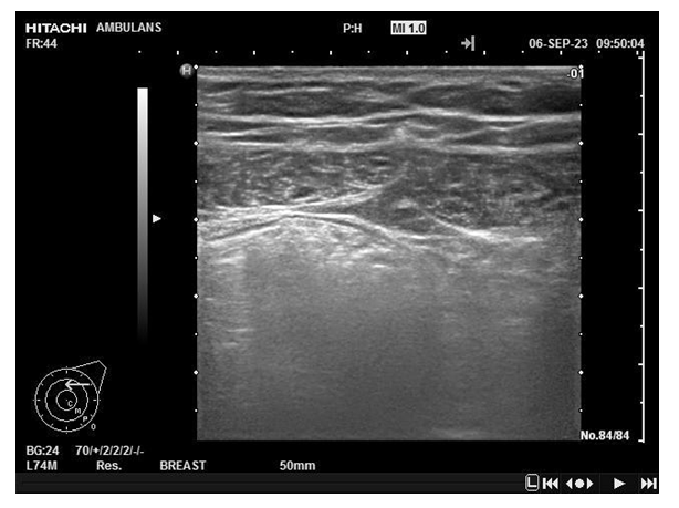 | Figure 2. Ultrasound picture of the muscles of the inguinal region in a patient with inguinal hernia |
