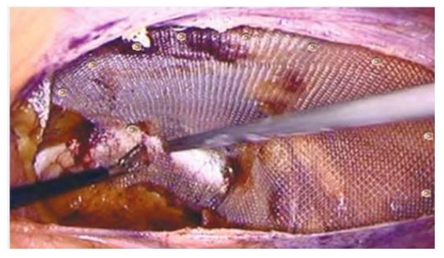 | Figure 4. Final stage. Peritonization of the endoprosthesis |