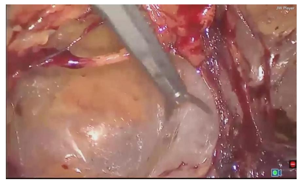 A feature of full extraperitoneal e-TER hernioplasty is that the entrance to the abdominal cavity is not performed, and all manipulations take place in the space created outside it (Fig. 5, 6). | Figure 5. Dissection in the extraperitoneal space |