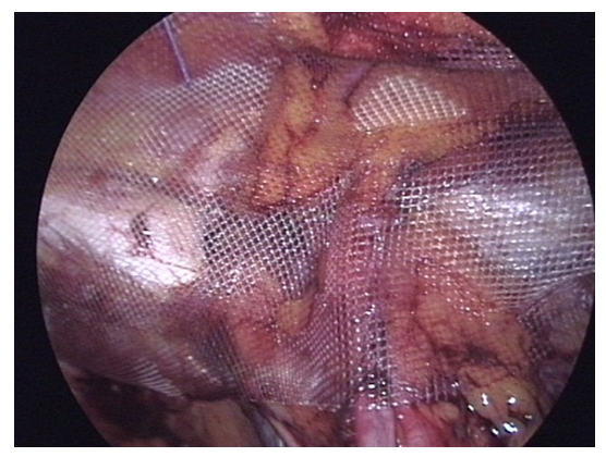 | Figure 6. The mesh implant is placed in the preperitoneal space |