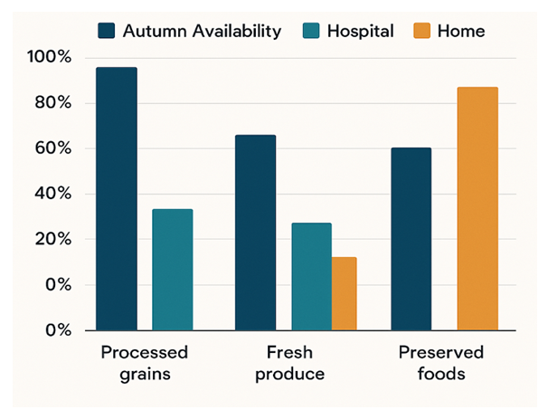 These results underscore a dual malnutrition burden: energy-dense, nutrient-poor diets in home settings, and restrictive, protein-deficient hospital meals—both aggravating hypertension. The autumn season’s preserved-food reliance appears to exacerbate these trends, creating a "perfect storm" of sodium overload and micronutrient depletion.