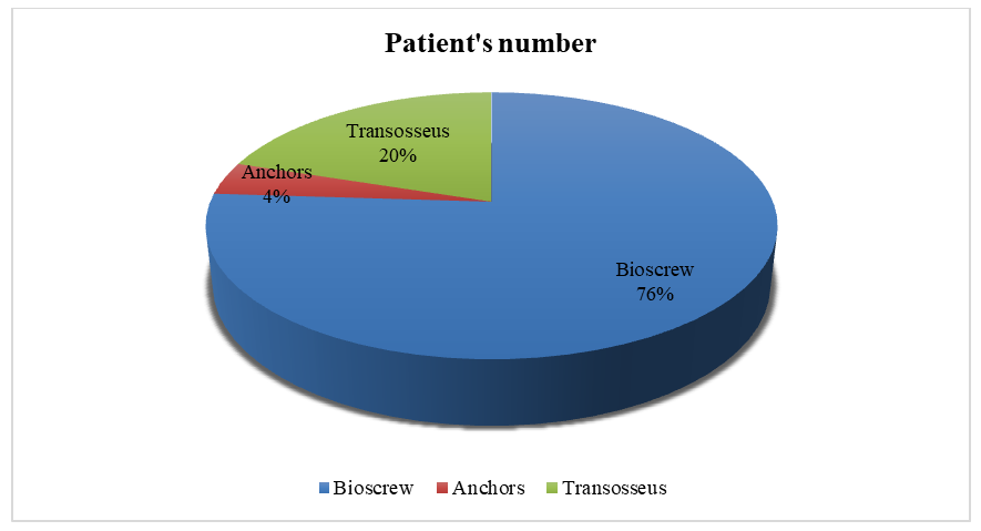 In patients, tendon fixation was performed using 3 main methods, similar to the control group. The distribution of patients according to the fixation method is presented in the following diagram. (Diagram 1) | Diagram 1. Distribution of patients according to the fixation method in arthroscopic tenodesis |