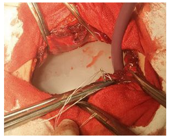 In the 4th subgroup, for 13 patients with grade III-IV abdominoptosis and scores ranging from 16 to 20, where there was a high risk of tissue tension and increased intra-abdominal pressure, we employed tension-free alloplasty with mobilization of the rectus abdominis sheaths according to the Ramirez technique.The use of the proposed pneumatic device (Fig. 2) in patients with morbid obesity during the implant fixation stages of surgery to prevent intestinal injury by needles significantly facilitated the technical execution of reconstructive plastic surgeries. | Figure 2. Pneumatic device for preventing intraoperative injuries to abdominal organs |