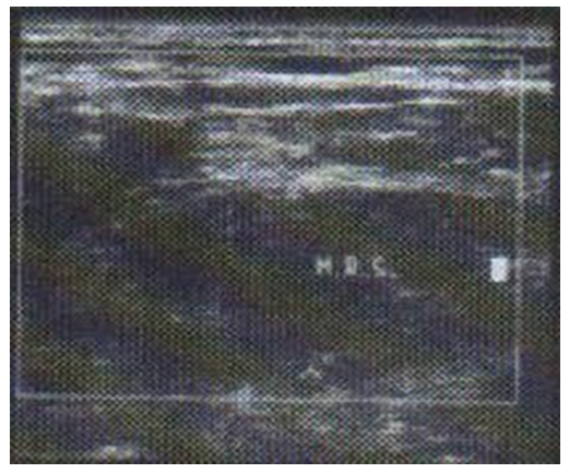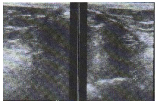 | Figure 4. Ultrasonography in POL. Thinning of the thickness of the external oblique abdominal muscle |