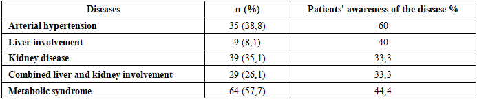 Cite this paper: Shodikulova Gulandom Zikriyayevna, Pulatov Ulugbek Sunatovich, Karimov Aziz Khamrokulovich, Clinical and Genetic Characteristics of Patients with Gout and Kidney and Liver Damage, American Journal of Medicine and Medical Sciences, Vol. 15 No. 10, 2025, pp. 3372-3376. doi: 10.5923/j.ajmms.20251510.19.