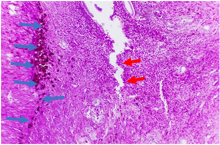 For the study, white nulliparous female rats aged 5-6 months weighing 130-140 g were selected. 5-6-month-old white outbred rats were kept in standard vivarium conditions with relative humidity (50-60%), temperature (19-22°C) and light regime (12 hours of darkness and 12 hours of light).In order to prevent infectious diseases in the vivarium and ensure the absence of infectious diseases, the laboratory animals were quarantined for 21 days and observed during these days, their temperature was measured and their weight was checked several times during these days. The increase was monitored. During this period, they did not show any symptoms of the disease, the temperature was within the normal range (38.5-39.5°C), appetite disorders and other external changes were not detected. On the 10th day, the animals were taken out of the experiment under ether anesthesia in compliance with the rules of euthanasia and autopsy material was collected for subsequent histological examination (small intestine). The autopsy material was labeled, fixed in 10% buffered formalin and subjected to histological examination using generally accepted histological techniques. To study the morphological parameters of the organs of laboratory animals, research methods widely used in experimental studies (anatomical dissection) were used. All histological preparations were examined using a trinocular microscope HL-19 (China) with software. Sections were stained with Schiff reagent.