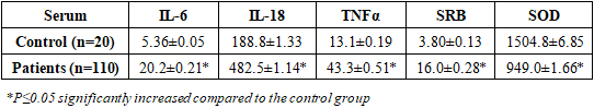 The study included 110 men aged 18 to 85 years with a confirmed diagnosis of APDOE, who were treated in the surgical department of the Bukhara branch of emergency medical care, which was the base of the Department of Urology of the Bukhara State Medical Institute. Inclusion criteria: confirmed diagnosis of APDOE, no previous immunosuppressive therapy, consent to participate. Exclusion criteria: chronic renal or hepatic failure, systemic autoimmune pathologies, oncological processes, decompensated metabolic disorders. The control group for immunological studies consisted of 20 healthy men of the same age.Concentrations of IL-6, IL-18, TNF-α and CRP in blood serum and urine were determined by ELISA (Vector Best, Russian Federation). Determination of the level of superoxide dismutase (SOD) in blood serum was carried out by ELISA using ELISA-SOD test systems (OOO Cytokine, St. Petersburg, Russia).Statistical data processing was performed using the standard Microsoft Excel 2016 package (Microsoft Corp, USA). During the analysis, the arithmetic mean (M), standard deviation (m), standard error of the mean (m) and Student's criterion (t) with calculation of the significance level (p) were calculated. Differences were considered statistically significant at p<0.05.