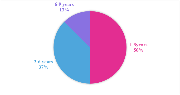 Of the 124 individuals examined, 24 were diagnosed with M. pneumoniae infection. The test results showed that 12 of them were aged 1 to 3 years; 9 were aged 3 to 6 years; and 3 were aged 6 to 9 years. M. pneumoniae infection mainly occurred in September-October. The presence of fever with a maximum temperature >39.0°C for ≥3 days was more common in the 1-3 age group (P< 0.05). Laboratory tests showed that infants aged 6-9 years had higher peripheral white blood cell counts (P = 0.04) and neutrophil counts (P = 0.02) and higher CRP levels (P = 0.05). Furthermore, the median length of hospitalisation for infants aged 1-3 years was shorter than in the other two groups. | Figure 1. Prevalence of mycoplasma pneumonia among the study group of children |