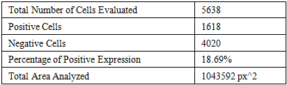 E-cadherin Expression in Kidney Tissue of 6-Month-Old Control RatsIn the kidney tissue of 6-month-old white outbred rats belonging to the control group, E-cadherin expression was observed at a low level in certain cells of the basal layer of the tubular epithelium. Immunohistochemical staining was performed using the DAB chromogen method, resulting in positive cells being highlighted in red. The histological preparations were analyzed under an optical microscope at 800× magnification. Digital images of the stained sections were scanned and analyzed using QuPath version 0.4.0, a software designed for quantitative assessment of tissue samples.The low-level expression of E-cadherin in the basal layer cells of the tubular epithelium indicates the maintenance of epithelial integrity under normal physiological conditions. E-cadherin, a transmembrane protein, plays a crucial role in cell-cell adhesion and the preservation of tissue architecture. Reduced expression of E-cadherin can compromise epithelial barrier function, potentially leading to increased susceptibility to pathological conditions.E-cadherin Expression in Kidney Tissue of 6-Month-Old White Outbred Rats Following 70% Acetic Acid-Induced Gastrointestinal Tract BurnsIn 6-month-old white outbred rats subjected to burns of the gastrointestinal tract using a 70% acetic acid solution, E-cadherin expression was observed at a high level in certain cells of the basal layer of the renal tubular epithelium. Immunohistochemical staining was performed using the DAB chromogen method, resulting in positive cells being highlighted in red. The histological preparations were analyzed under an optical microscope at 800× magnification. Digital images of the stained sections were scanned and analyzed using QuPath version 0.4.0, a software designed for quantitative assessment of tissue samples.These findings suggest that severe chemical injuries to the gastrointestinal tract, particularly due to acetic acid exposure, result in significant alterations in kidney tissue, including changes in E-cadherin expression. E-cadherin, a transmembrane protein, plays a crucial role in cell-cell adhesion and the preservation of tissue architecture. The increased expression of E-cadherin in the kidney tissue may reflect the underlying pathophysiological processes following such burns.Table 2. E-cadherin immunohistochemical expression in kidney tissue after 70% acetic acid–induced gastrointestinal burns  |