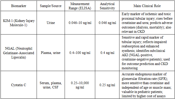 Table 4. Comparative Characteristics of AKI Biomarkers  |