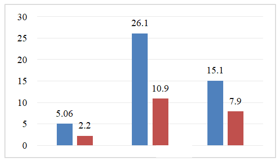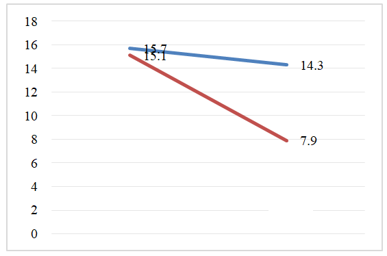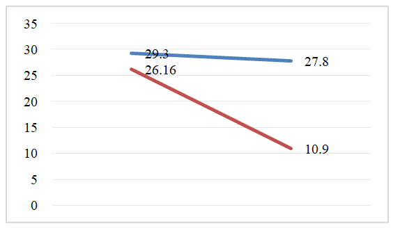 Thus, in the group of patients with ischemic stroke, with standard therapy, the main inflammation was obtained, and there was no significant decrease in the level of anti-inflammatory cytokines il-1β, il-6 and il-8. In the main group, where immunocorrectional therapy was used, these indicators were significantly lower. Comparison of the content of serum il-6 cytokine in the main (immunocorrigiratory therapy received) and comparison (standard traditionally treated) group of patients with ischemic stroke clearly shows the dynamics of decline, which once again confirms the effectiveness of immunocorrectional therapy in comparison with standard therapy (Figure 3). | Figure 3. Dynamic indicators of the content of il-6 in the blood on the 1st and 15th days of treatment in the main group receiving immunocorrectional therapy with II and in the comparison group receiving standard conventional therapy |