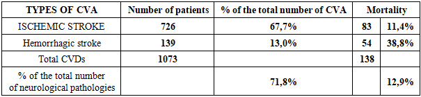 Cite this paper: Mamataliyeva Janona Alimjanovna, Usmanova Durdona Djurabayevna, Features of Occurrence and Mortality from Ischemic and Hemorrhagic Stroke in the Fergana Valley for 2020, American Journal of Medicine and Medical Sciences, Vol. 15 No. 11, 2025, pp. 3945-3947. doi: 10.5923/j.ajmms.20251511.42.