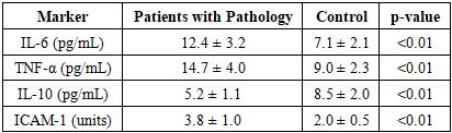 Table 2. Levels of Immunogenetic Markers in Patients with Pathology and Control Group  |