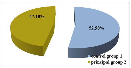 This scientific study was devoted to analyzing the clinical features of Autism Spectrum Disorders (ASD) in children and, based on these findings, to developing and selecting appropriate rehabilitation methods.In total, 68 children (100%) — both boys and girls diagnosed with ASD — participated in the study. Based on the identified clinical characteristics, a comprehensive rehabilitation program was applied. The children were examined and treated at the Republican Mental Health Center (Bukhara Branch) and the “Alfa Medical Center” private clinic, both in inpatient and outpatient settings, during the period from 2022 to 2024.To ensure the reliability and validity of the research, all 68 children were divided into two groups:• Group 1 (Main Group) – 36 children (52.9%) who received the proposed comprehensive rehabilitation program;• Group 2 (Control Group) – 32 children (47.1%) with ASD who underwent conventional treatment (see Figure 1). | Figure 1. Distribution of patients into groups |
