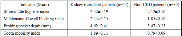Cite this paper: Rizaev E. O., Mirzaev Kh. Sh., Clinical and Microbiological Features of Generalized Periodontitis in Patients After Kidney Transplantation, American Journal of Medicine and Medical Sciences, Vol. 15 No. 11, 2025, pp. 4147-4149. doi: 10.5923/j.ajmms.20251511.87.