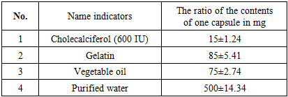 To achieve this goal, we studied organoleptic, microbiological, and physicochemical studies on rats.Together with employees Nurti Makon Factori " Numa Vitamin D3" soft gelatin capsules were developed, obtained by pressing, with additives of minerals, vitamins, and plant extracts by mixing them, in the form of soft and hard encapsulated forms, intended as an additional source in case of insufficient intake of vitamin D3 from food and intended for sale in the retail and pharmacy network.The nutritional and biological value of the product were studied on male and female white rats in accordance with the purpose, obtained from the zoo section of the USEN GMU. with an initial body weight of 140-160 grams. The animals were kept under standard conditions on a general vivarium food ration, 6 individuals per group, the diet of the experimental groups was supplemented with the studied additives, which were administered through a tube after preliminary grinding of the candies and mixing with water to a suspension. Organoleptic indicators were determined by smell, color and transparency according to GOST 1198; O ' zDSt 950: 2011 - drinking water; O ' zDSt - 1197-2015 - vegetable oils; the content of cholecalciferol (vitamin D3) by high-performance liquid chromatography according to GOST EN 12821-2014. The control methods for physical and chemical indicators were carried out according to the organization standard Ts 309753282:001-2022.The statistical study was conducted using Microsoft Office Excel-2020 and SPSS 22 software packages.