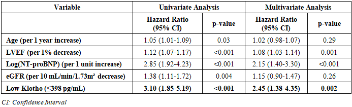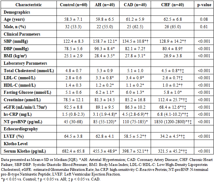 Cite this paper: Nilufar Gadaeva Abdugaffarovna, Diagnostic Significance of Klotho Protein in Cardiovascular Diseases: A Clinical Study from Tashkent State Medical University, American Journal of Medicine and Medical Sciences, Vol. 15 No. 12, 2025, pp. 4481-4488. doi: 10.5923/j.ajmms.20251512.62.