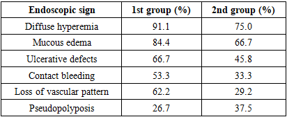 Deficiencies were observed in all patients with NSUC, but to a greater extent in operated patients. This is due to impaired absorption in the intestines, accelerated catabolism, and chronic inflammation. The data emphasize the need to include routine micronutrient evaluation in the NSUC examination standards.The endoscopic picture reflected pronounced inflammatory changes with varying degrees of mucosal involvement (Table 5).Table 5. Frequency of endoscopic signs in patients with NSUC  |
