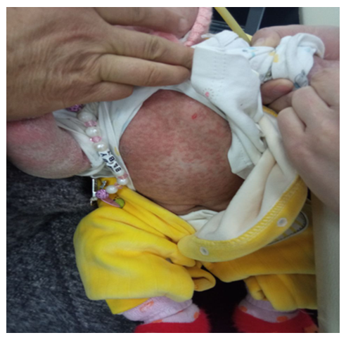 | Figure 5. Appearance of skin rash on abdomen of newborn with scabies |