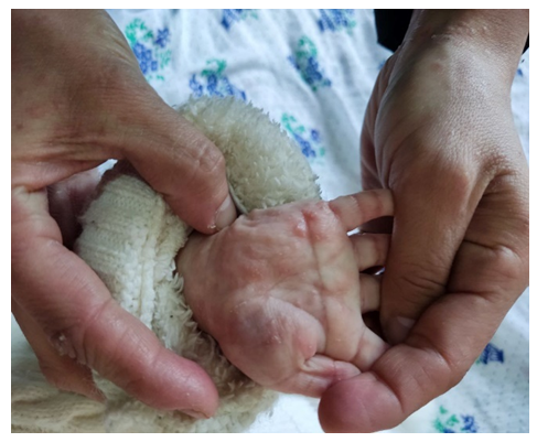 | Figure 4. Appearance of rash on palms of newborn with scabies |