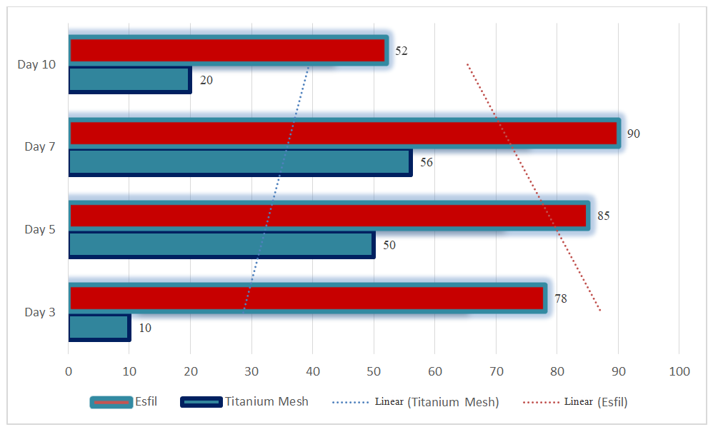 ![]() | Figure 1. The dynamics of changes in TNF-α concentration from day 3 to day 10 (pg/ml) |