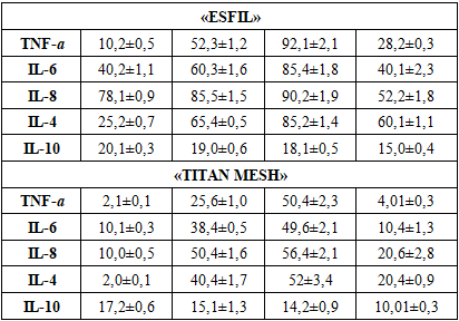 Keywords: Inflammation, Ventral Hernia, Biocompatibility, Prosthetic Implants, Cytokine Profile, TNF-α, IL-6, IL-8, IL-4, Scar Formation