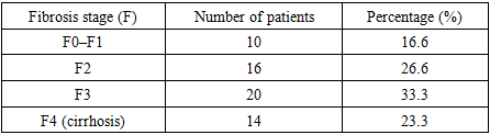 Table 1. Distribution of fibrosis stages in chronic hepatitis C patients (n=60)  |
