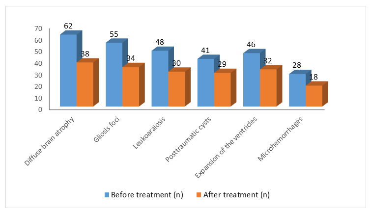 Keywords: Post-traumatic encephalopathy, Traumatic brain injury, Cognitive impairment, MMSE, MRI, EEG, Neurodegeneration, Комплекс therapy, Cerebral atrophy