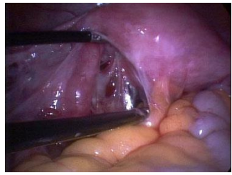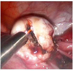 Ovarian reserve depletion syndrome, described by Bugerenko K.A. et al. (2018) and Kochneva E.V. (2018), is characterized by critically low ovarian reserve. Even cystectomy, though aimed at removing endometriomas, can significantly reduce follicular count. A joint statement by the European Society for Gynaecological Endoscopy, ESHRE, and the World Endometriosis Society outlines organ-preserving surgical strategies for endometriomas. These include:• Cystectomy without the use of high-energy tools• Laser or plasma excision of the endometriotic capsule• Bipolar electrocautery for hemostasisRegarding electrosurgical techniques, it is recommended to use bipolar energy not exceeding 40 watts. Monopolar energy is reserved for rare indications, such as fibrotic endometriotic tissue at the ovarian hilum, with a recommended power limit of 20 watts (Saridogan E. et al., 2017). Research by Davydov A.I. highlights the potential for deep tissue damage that may not be visible laparoscopically, underscoring the importance of technique selection [3].An alternative viewpoint has been presented by researchers including M. Candiani (2018), M. Vignali (2015), and F. Zhao (2020), who question the widespread use of electrocautery. Davydov A.I. and colleagues (2012, 2013) argue that even "cold" cystectomy may not fully preserve ovarian reserve. Their main concern is the significant decline in ovarian reserve post-cystectomy, which can reduce the success of assisted reproductive technologies. However, later ESHRE guidelines omitted this principle, possibly due to concerns about the risk of endometriosis-associated ovarian cancer [6].In Group 2, the ablation of the endometrioma was performed using bipolar electrocautery. After partial excision, the cyst wall was everted so the ovary resembled a mushroom cap, exposing the endometriotic lining. This surface was ablated with a bipolar clamp (36–38 W), after which the ovary spontaneously returned to its normal shape. | Figure 2. Ablation of ovarian endometrioma using bipolar electrocautery. |