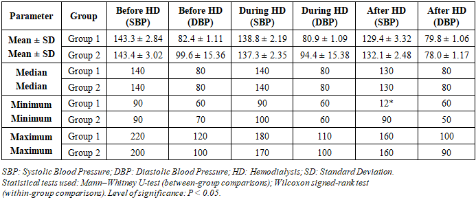 Cite this paper: Kh. A. Abdullaeva, M. A. Sabirov, Blood Pressure Dynamics in Chronic Kidney Disease Patients During Programmed Hemodialysis: Cross-Sectional Observational Study, American Journal of Medicine and Medical Sciences, Vol. 16 No. 3, 2026, pp. 1075-1080. doi: 10.5923/j.ajmms.20261603.48.