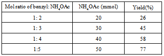 Cite this paper: Reza Tayebee, Malihe Ghadamgahi, A New Insight on the Synthesis of 2,4,5-Triaryl-1H-imidazoles in the Absence of Catalyst, American Journal of Organic Chemistry, Vol. 2 No. 1, 2012, pp. 25-27. doi: 10.5923/j.ajoc.20120201.05.