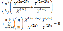 .Depending on the parity of n, certain terms of (10) vanish, yielding either an extremely complex two-term relation of the form | (12) |