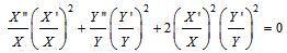 derived as the limit of the Euler-Lagrange equation (see for details and applications[9] and references therein). Equation (38) expressed in two dimensions and after simple algebra transforms into  | (39) |