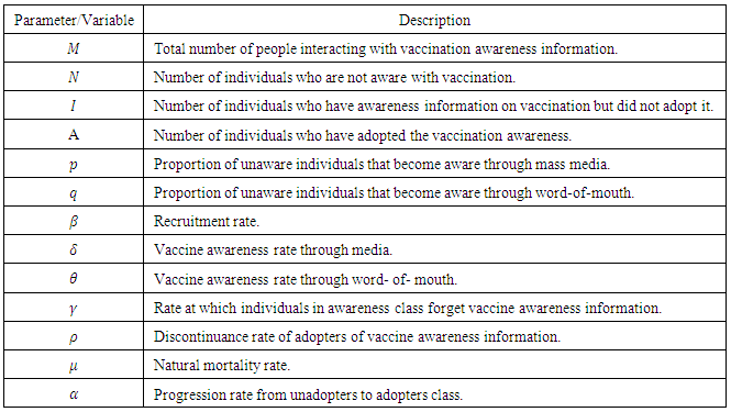 Cite this paper: Joram Aminiel, Damian Kajunguri, Emmanuel A. Mpolya, Mathematical Modeling on the Spread of Awareness Information to Infant Vaccination, Applied Mathematics, Vol. 5 No. 6, 2015, pp. 101-110. doi: 10.5923/j.am.20150506.01.