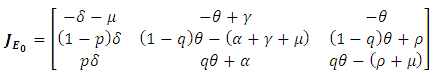Then the awareness free equilibrium point E0, is given by![]() | (3) |