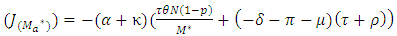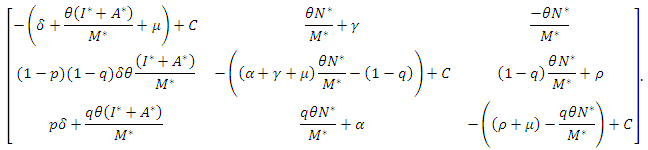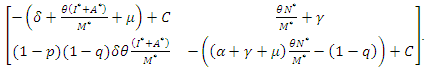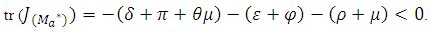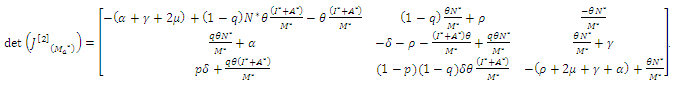 in which for local stability of awareness free equilibrium we seek for all its eigenvalues to have negative real parts. The characteristic function of the matrix (4) with