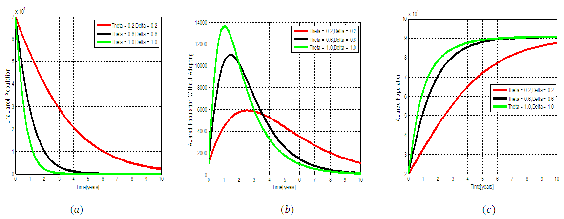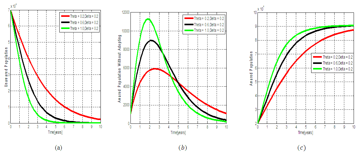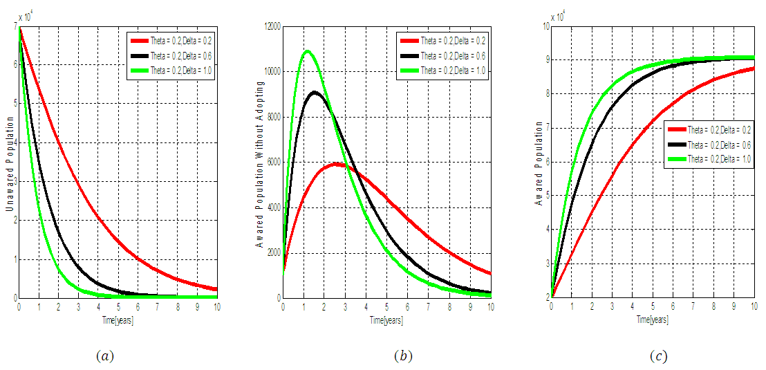 and it is obtained by setting the right hand side of equations equal to zero. In this paper, maximum awareness equilibrium works as for endemic equilibrium in disease model.![]() | (5) |