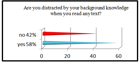 Only 58% are distracted by their background knowledge when they read a text. These students use their prior knowledge when they face new information from the text while reading it. As it is shown in the below graph. | Graph 6 |