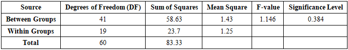 A one-way ANOVA test was conducted on the age variable to check if any differences were significant at the 0.05 level of significance. The result returned a significance value of 0.384, thus failing to reject the hypothesis since there is no statistically significant difference between the mean views of individuals from small enterprises on the levels of implementation of total quality management dimensions by age variable. This can be interpreted as irrespective of their ages, employees believe that companies pay minimal attention to reviewing budgets, setting indicators, and evaluating and correcting deviations which are integral elements within total quality management.Table 8. Results of ANOVA Analysis for Age-Based Differences  |