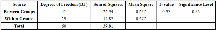 A one-way ANOVA test was run on the age variable to check if any differences were significant at the 0.05 level of significance. The result returned a significance value of 0.384, thus failing to reject the hypothesis since there is no statistically significant difference between the mean views of individuals from small enterprises on the levels of implementation of total quality management dimensions by age variable. This can be interpreted as irrespective of their ages, employees believe that companies pay minimal attention to reviewing budgets, setting indicators, and evaluating and correcting deviations which are integral elements within total quality management.Table 9. Results of ANOVA Analysis for Differences Based on Years of Experience  |