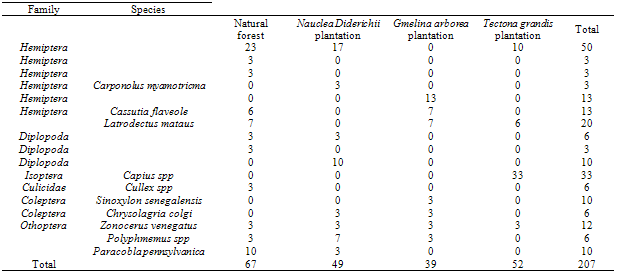 Table 3. The abundance of litter arthropods in the studied habitats  |