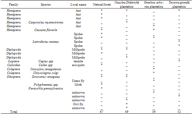 Adeduntan Sunday Adeniyi , Olusola Johnson Adeyinka , "Comparative Survey of Litter Arthropods and Soil Mesofauna in the Natural Forest and Plantation (a Case Study: Akure Forest Reserve Aponmu)", International Journal of Agriculture and Forestry, Vol. 2 No. 1, 2012, pp. 63-71. doi: 10.5923/j.ijaf.20120201.11.